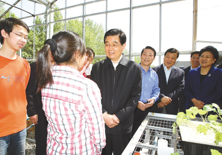 考察結束時,胡錦濤同中國農業大學師生代表進行了座談。