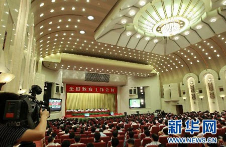 2010年7月14日,胡錦濤在全國(guó)教育工作會(huì)議上發(fā)表重要講話。新華社記者劉衛(wèi)兵攝